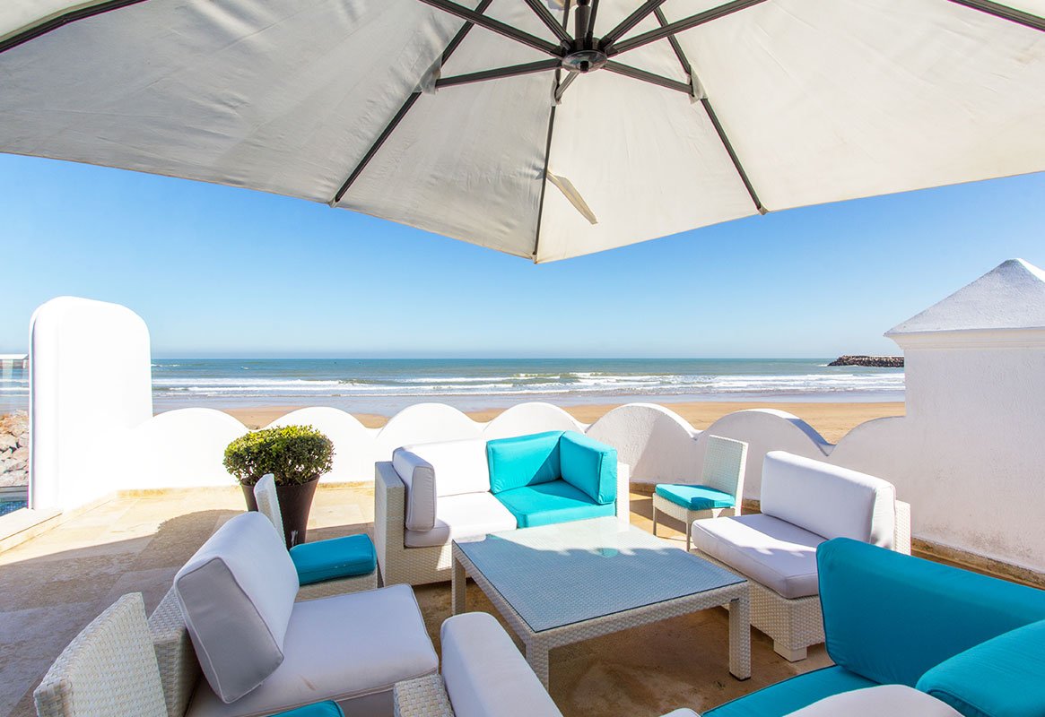 Un cadre idyllique avec une vue plongeante sur la plage de Skhirat et l’océan Atlantique. Le spectacle quotidien du lever ou du coucher du soleil devient votre rituel.